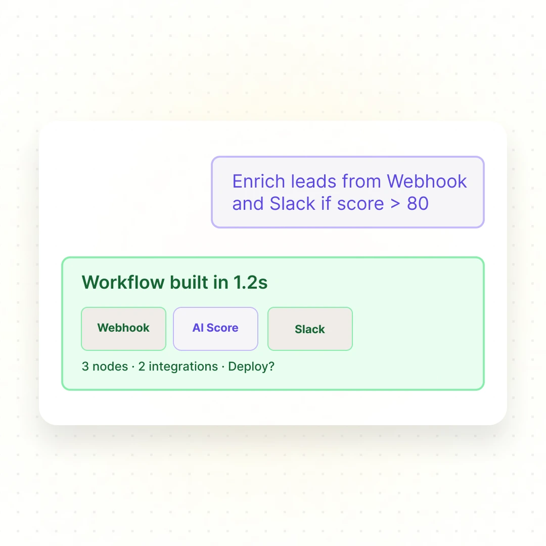 Describe your workflow in plain English and watch Onetab build it in seconds. Iterate through chat to refine logic, add integrations, and deploy—no coding required.