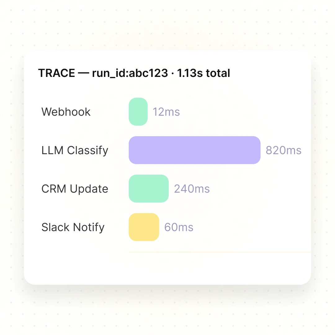 Every decision is logged. Trace every prompt, model response, and API call. Stream your logs to your preferred tools for total audit compliance and effortless debugging.