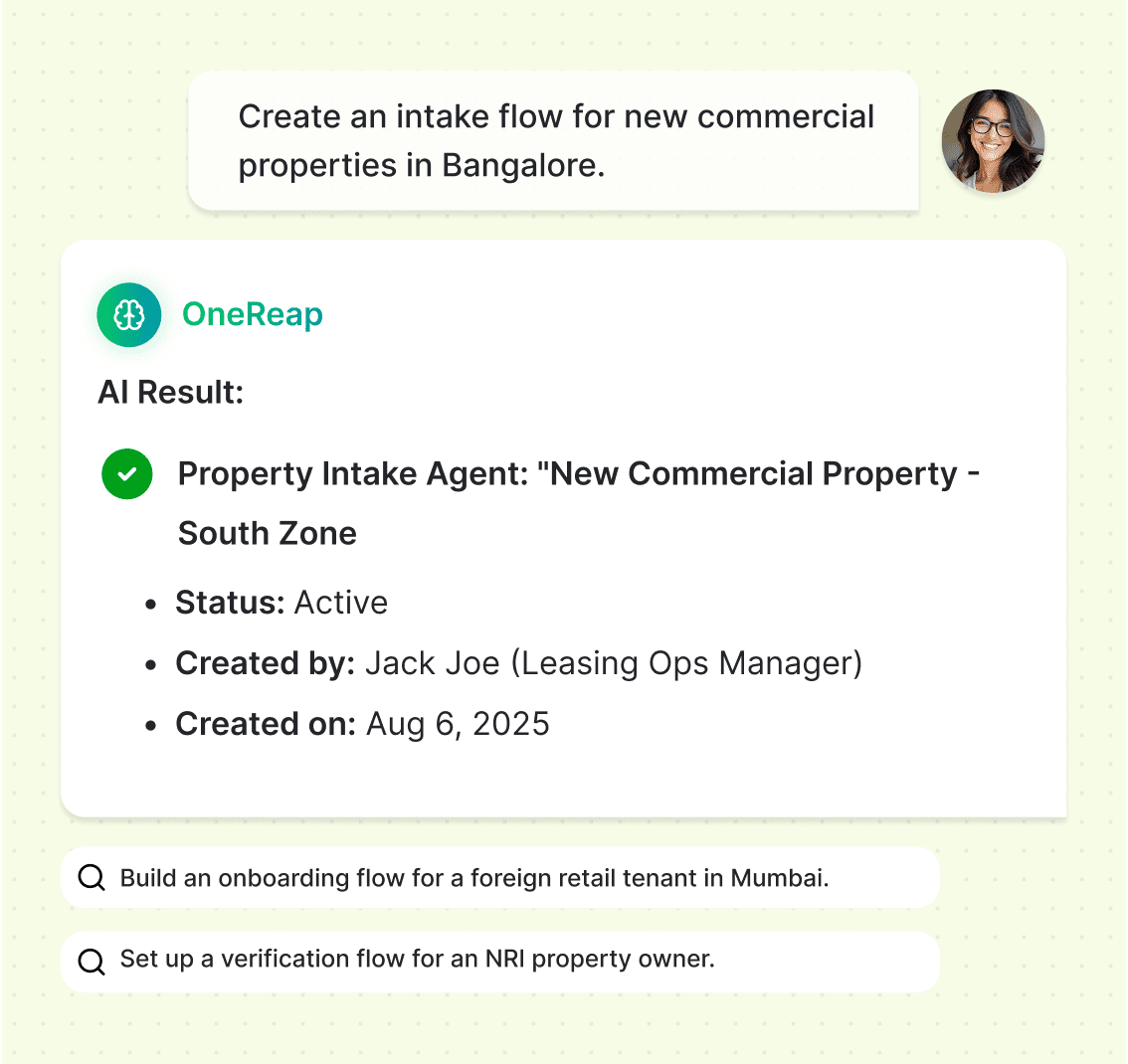 Create custom flows for property intake, client onboarding, or verification — no coding required.