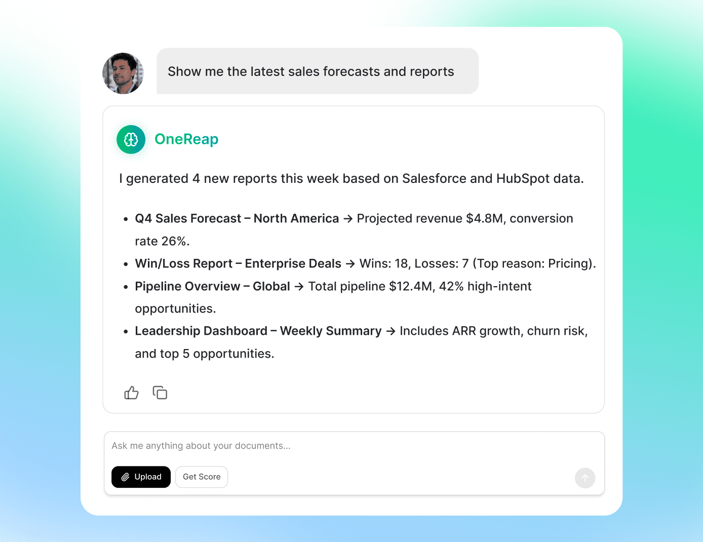 Turn messy data into confident decisions. OneReap Agent blends data intelligence, deep analysis, and a virtual digital colleague, with verification you can trust.